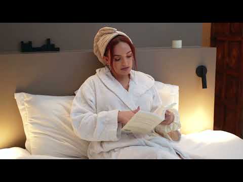 - Après la douche ou le soin : Penchez la tête en avant, placez la serviette avec le bouton au niveau de votre nuque, puis enveloppez vos cheveux et fixez l’élastique au bouton.